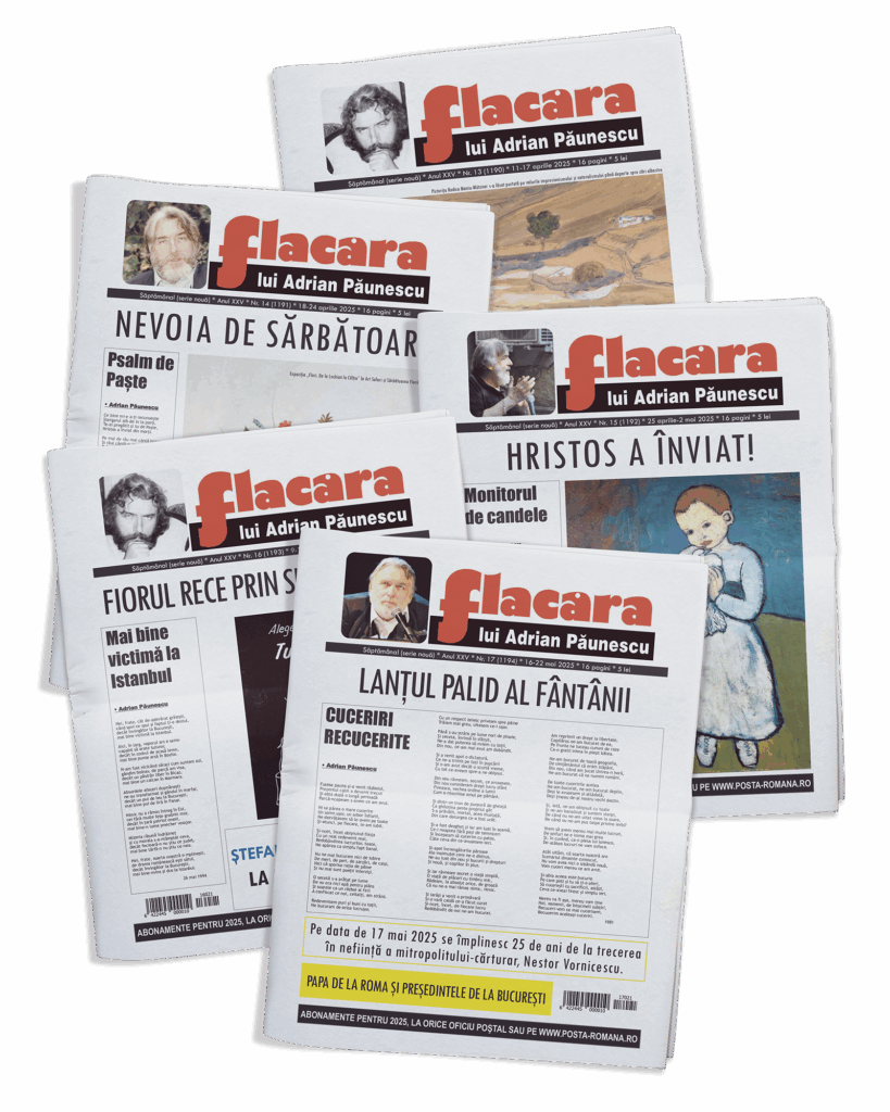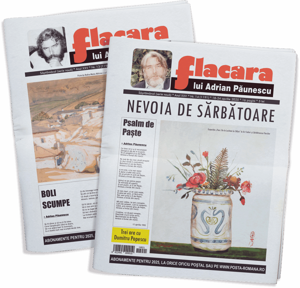 Revista Flacăra lui Adrian Păunescu este o publicaţie de literatură, opinie, umor, libertate şi sentiment. Mai mult decât atât, revista Flacăra lui Adrian Păunescu este o revistă de tradiţie care de douăzeci și cinci de ani, în ciuda vremurilor tot grele, se încăpăţânează să supravieţuiască. Şi ce dulce supravieţuire!